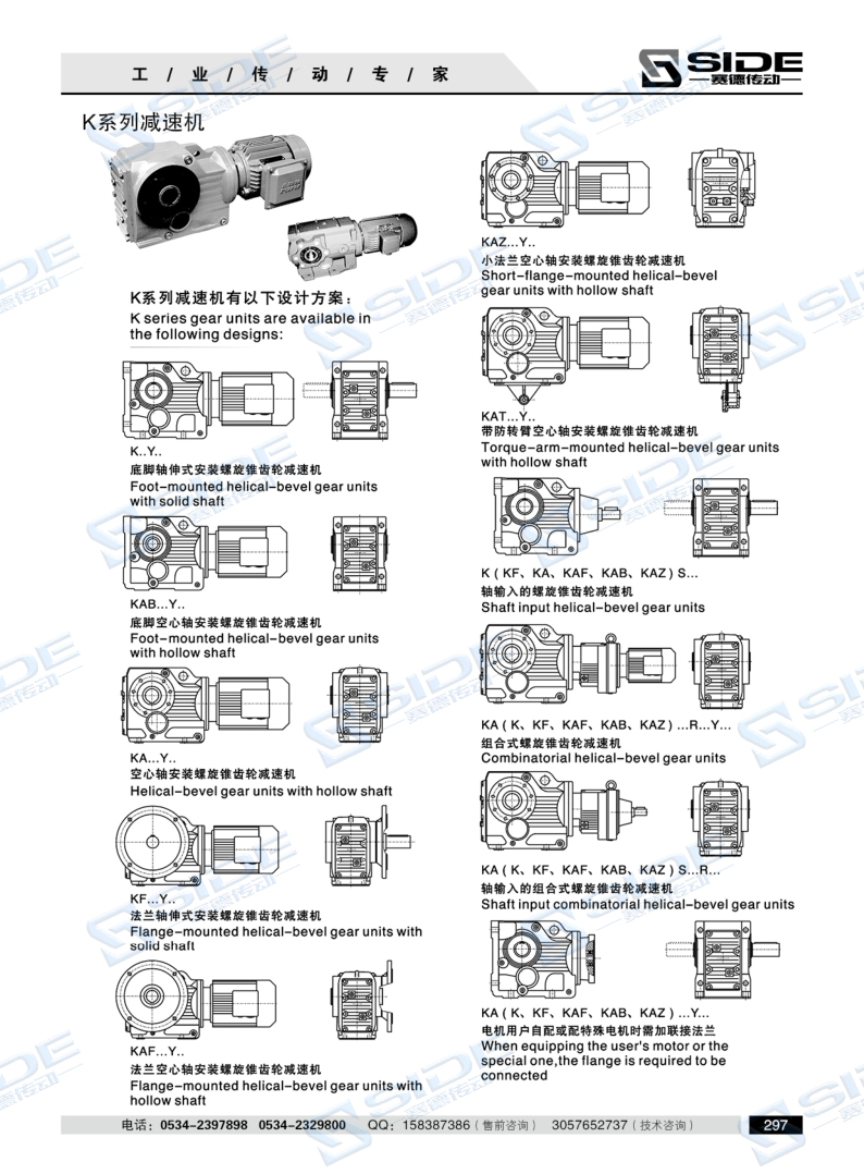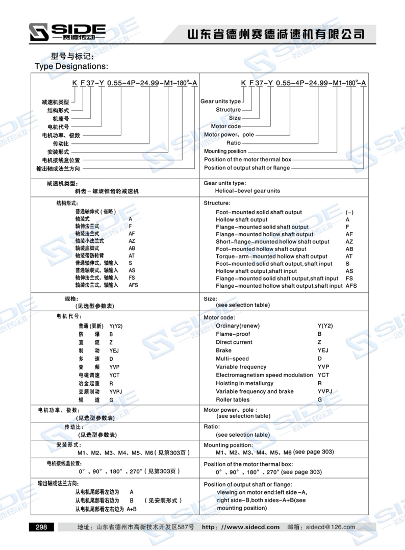 結構形式:K-軸伸式、底腳安裝;KA-軸裝式聯接;KF-軸伸式、法蘭安裝;KAF-軸裝式、法蘭安裝;S-表示軸輸入。